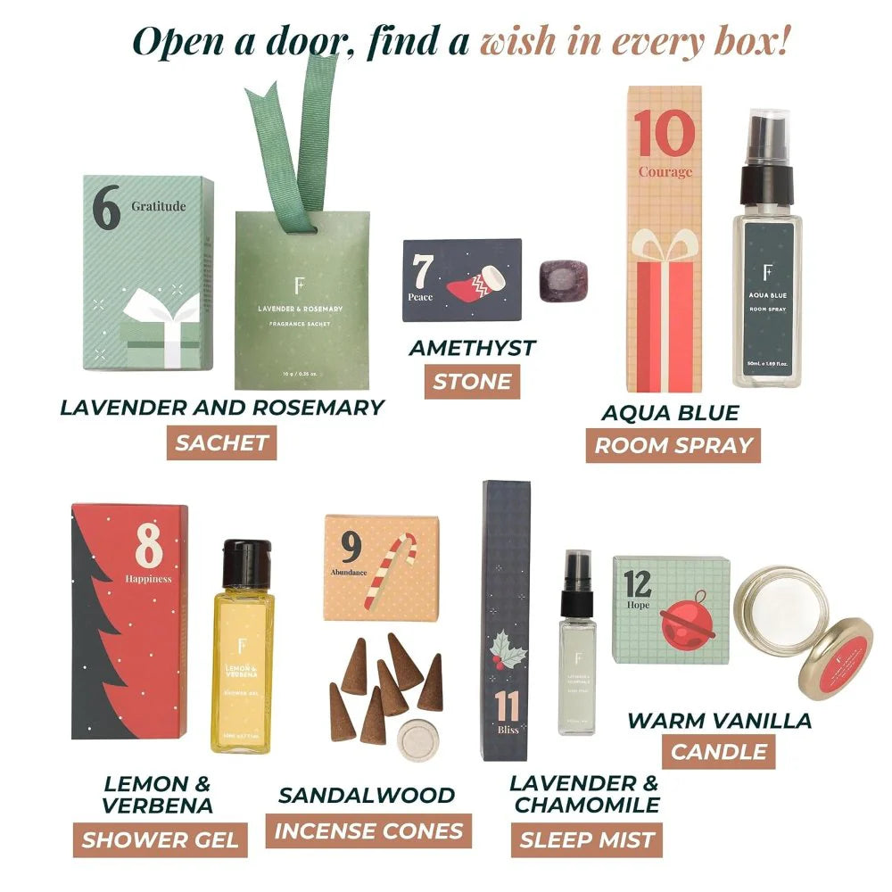 Celebrate the magic of Christmas with 12 days of indulgent self-care surprises. Inside, discover a curated selection of aromatherapy and wellness treasures — including essential oils, candles, wax melts, incense sticks and cones, room sprays, soaps, shower gels, healing stones, sachets, and sleep mist.